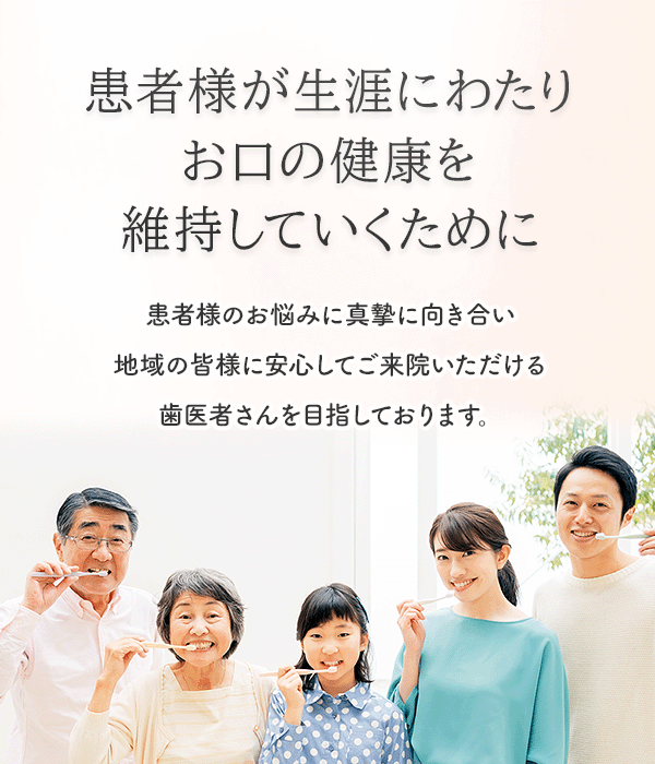 甲府デンタルクリニックでは【ホスピタリティーマインド】の精神を大切に、地域の皆様に安心してご来院いただける医院を目指しております。